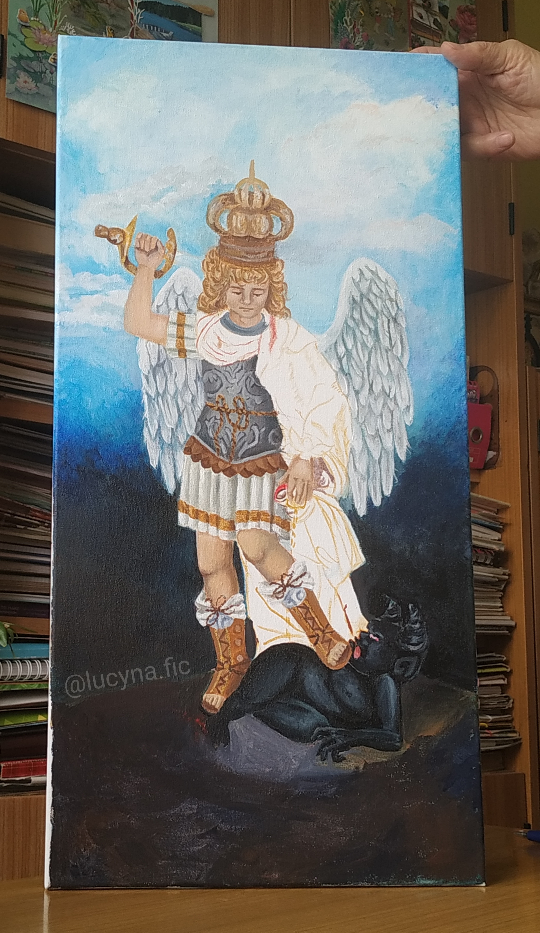 Obecny obraz jest inny,ale minęło kilka lat i moje umiejętności też jakby ewaluowały na lepsze. Zdecydowanie w tej wersji podobają mi się bardziej cienie postaci , twarz i fryzura anielicy.
